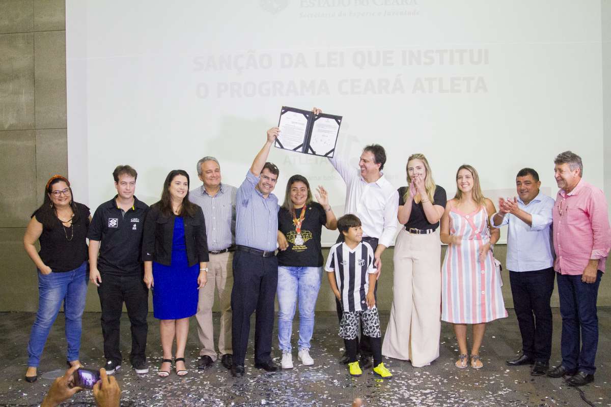 O incentivo à prática de esportes no Ceará ganhou um reforço extra em investimento de aproximadamente R$ 7 milhões quando o governador Camilo Santana sancionou, nesta sexta-feira (3), a lei que torna em política de estado o Programa Ceará Atleta, cujo objetivo é incentivar financeiramente e favorecer o desempenho esportivo dos atletas que estão abaixo da linha da pobreza. A lei já garante que 4 mil pessoas sejam beneficiadas com a bolsa somente este ano. O ato ocorreu na sede da Secretaria de Esporte e Juventude (Sejuv) e contou com a presença do titular da pasta, Rogério Pinheiro, esportistas e representantes de federações.
