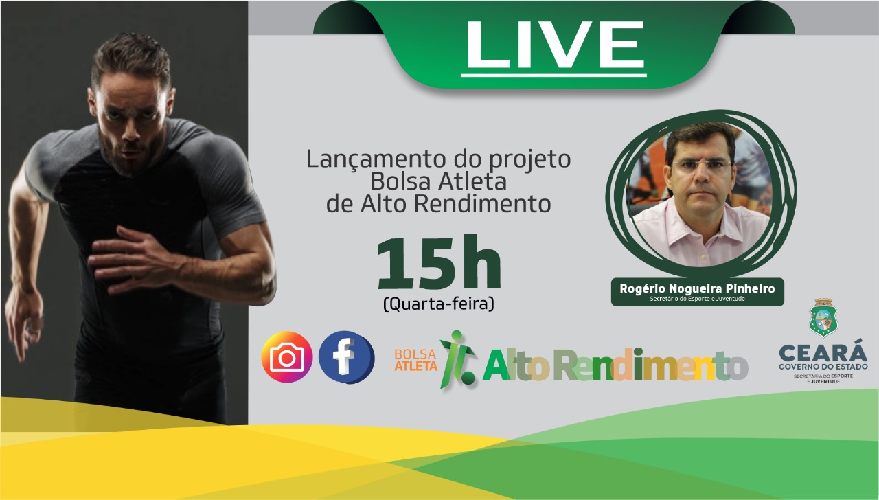 A Secretaria do Esporte e Juventude (Sejuv) lança, nesta quarta-feira (21), às 15h, em transmissão ao vivo pelas redes sociais, o edital do Projeto Bolsa-Atleta de Alto Rendimento. A live contará com a participação do titular da pasta do esporte e presidentes de federação.