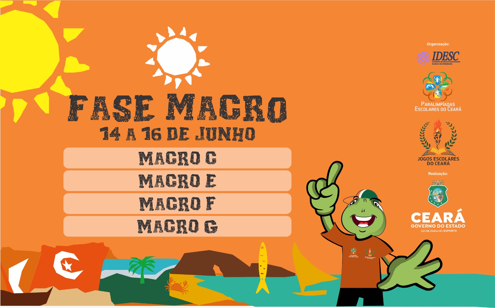 Nos dias 14 a 16 de junho, acontece mais uma rodada dos Jogos Escolares do Ceará, referente à fase Macro Regional, nos municípios de Sobral, Jaguaribe, Iguatu e Crato.