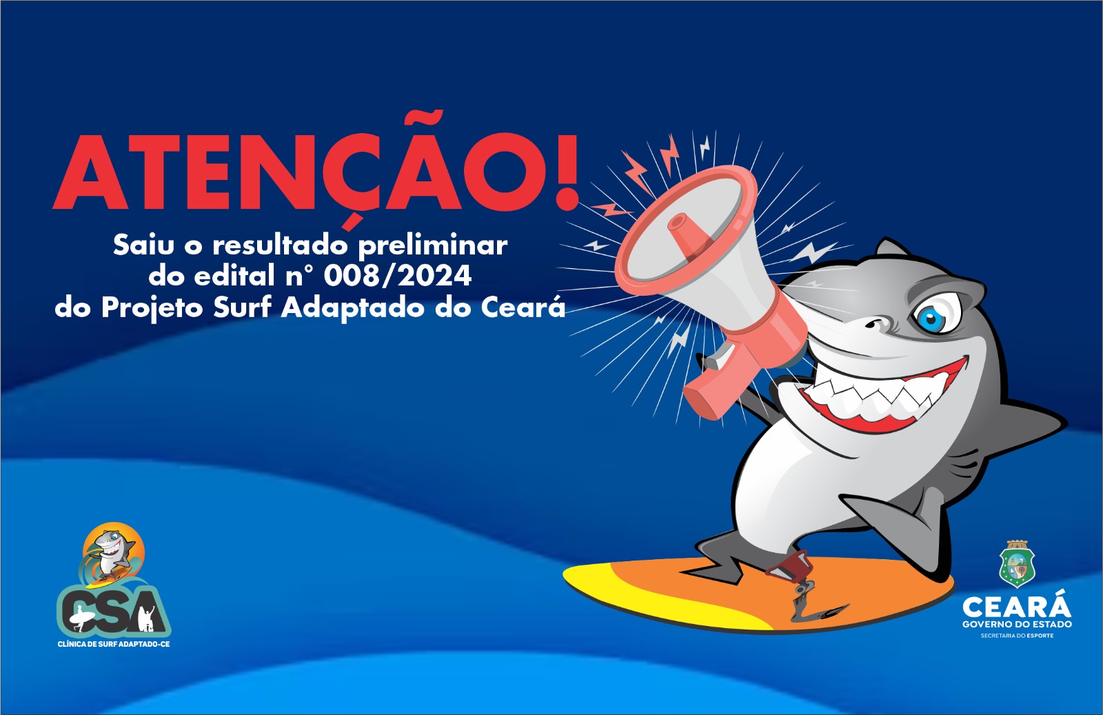 A Secretaria do Esporte (Sesporte) divulga, nesta quarta-feira (28), o resultado preliminar do edital N° 08/2024 para escolha da entidade que irá executar o Projeto Clínica de Surf Adaptado.