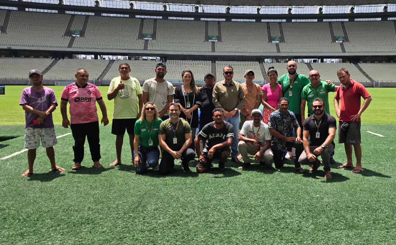 Os participantes visitaram o museu da Arena Castelão que tem como objetivo gerar uma experiência única, apresentando a história in loco do equipamento. Além de conhecer, o museu os participantes fizeram um tour nos vestiários, sala de imprensa e gramado.