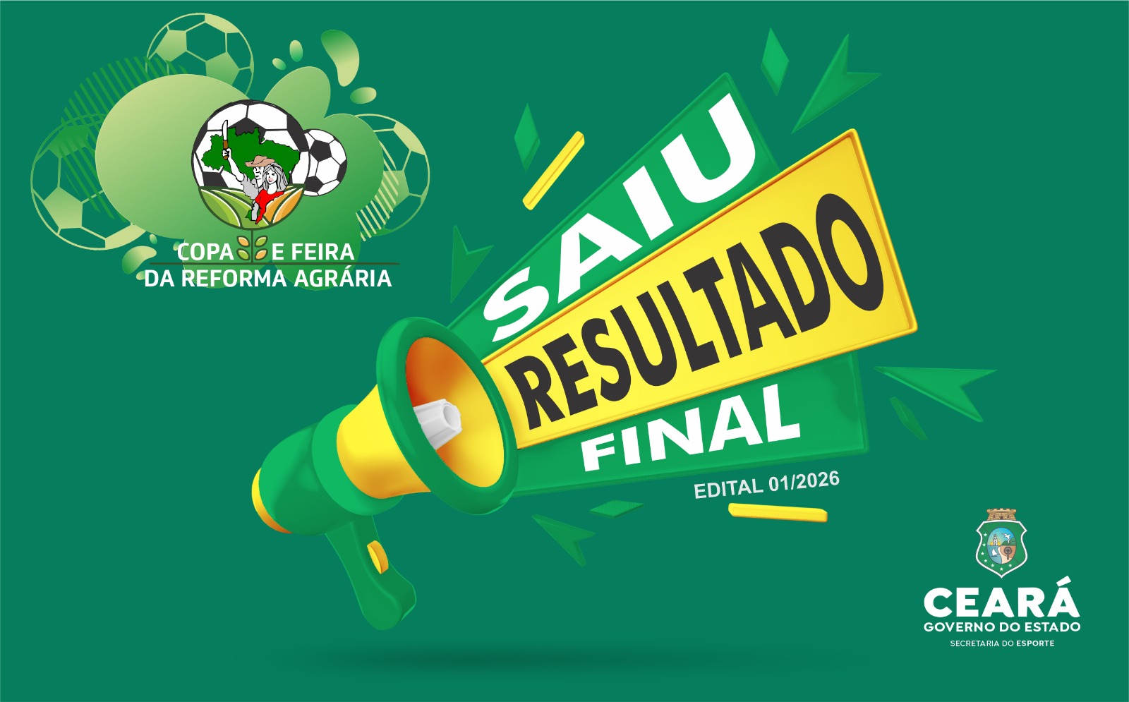 A Secretaria do Esporte (Sesporte) divulga, nesta terça-feira (17), o termo de ratificação e homologação do chamamento público Nº 001/2026 referente ao Projeto Copa e Feira da Reforma Agrária.