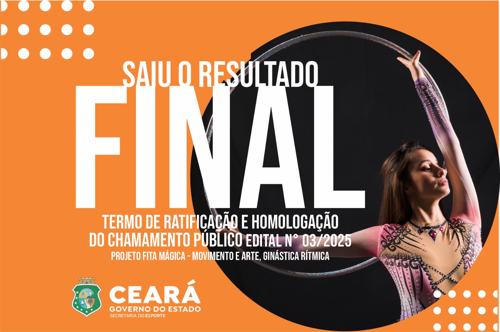 A Secretaria do Esporte (Sesporte) divulga, nesta quarta-feira (1º), o termo de ratificação e homologação do chamamento público Nº 03 /2025 referente ao Chamamento Público do Projeto Fita Mágica – Movimento e Arte na modalidade de Ginástica Rítmica.